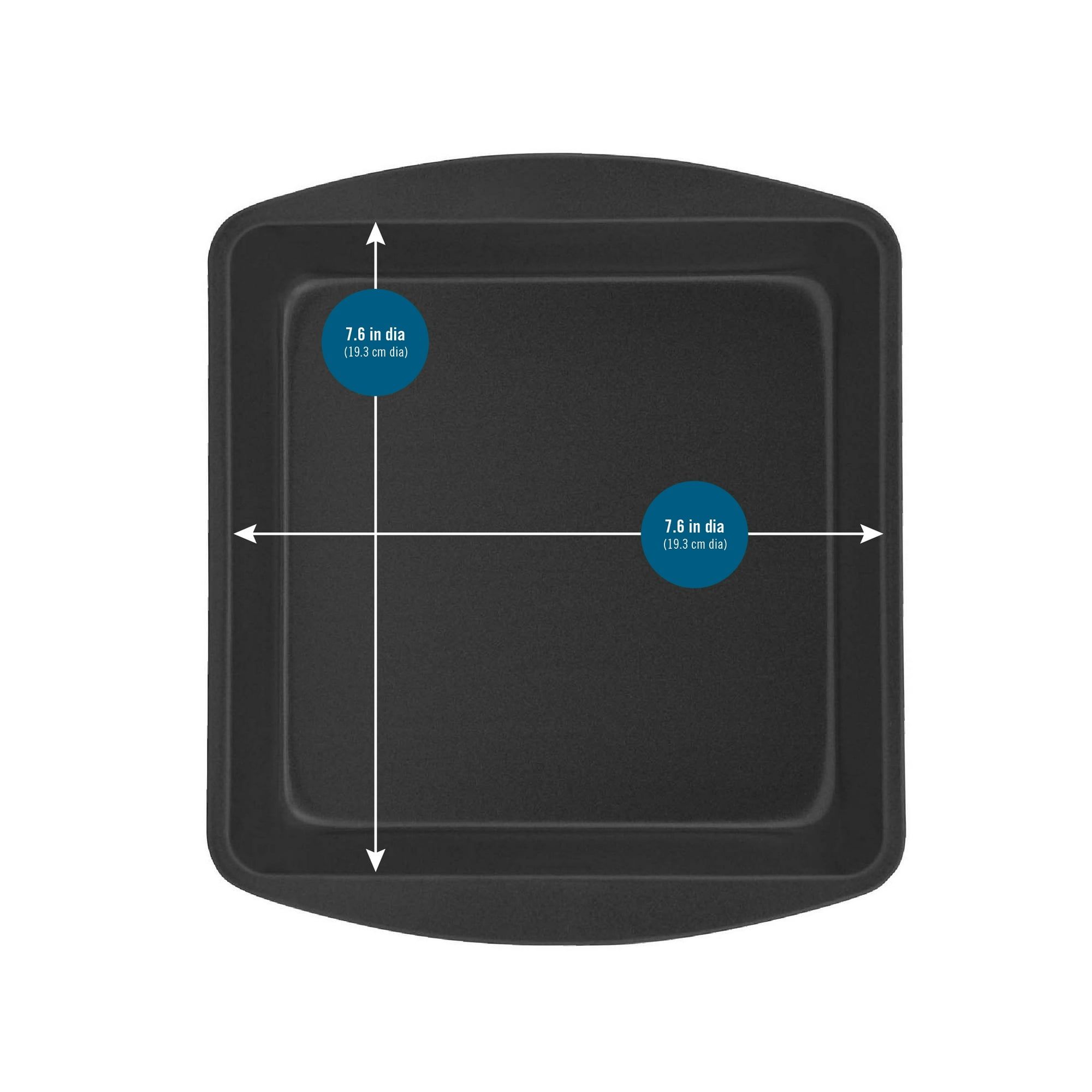 Ideal for brownies, blondies, cornbread and more, Nonstick Square Cake Pan is a versatile pan that can be used for a variety of baking occasions. Never worry about inconsistent baking results. Pan is made with durable steel that heat evenly during baking producing golden results edge to edge. Pan is coated with a durable nonstick finish that requires no oil, cooking sprays or expensive paper liners. The nonstick finish allows food to release effortlessly, making cleanup quick and easy. Dishwasher safe, but hand wash and towel dry are recommended. Pan internal dimensions are 7. 6-inch x 7. 6-inch x 1. 8-inch. External dimensions are 9. 4-inch x 8. 2-inch x 2-inch