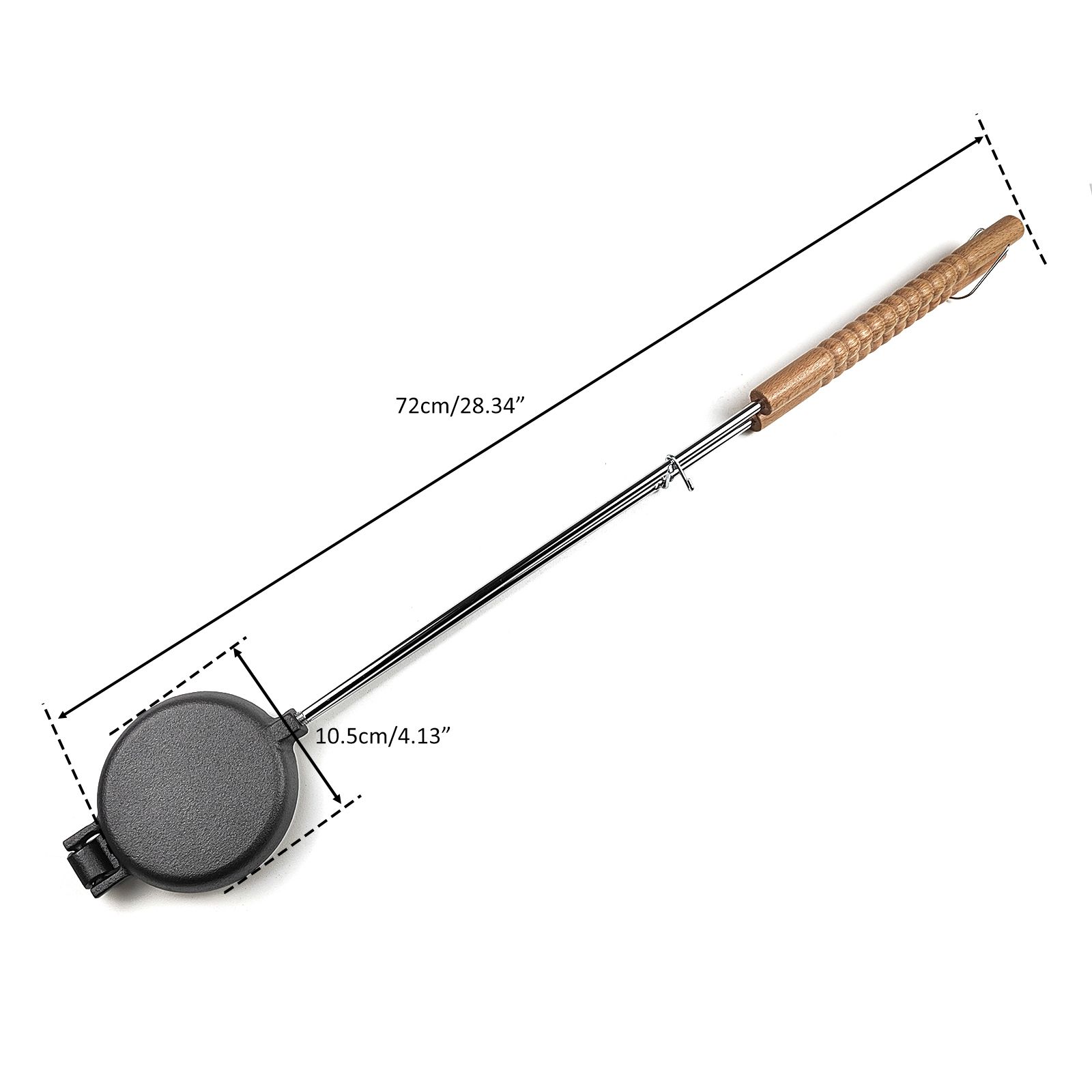 HAWOK Cast Iron Round Pie Iron with Stainless Steel and Wooden Handle set of 2