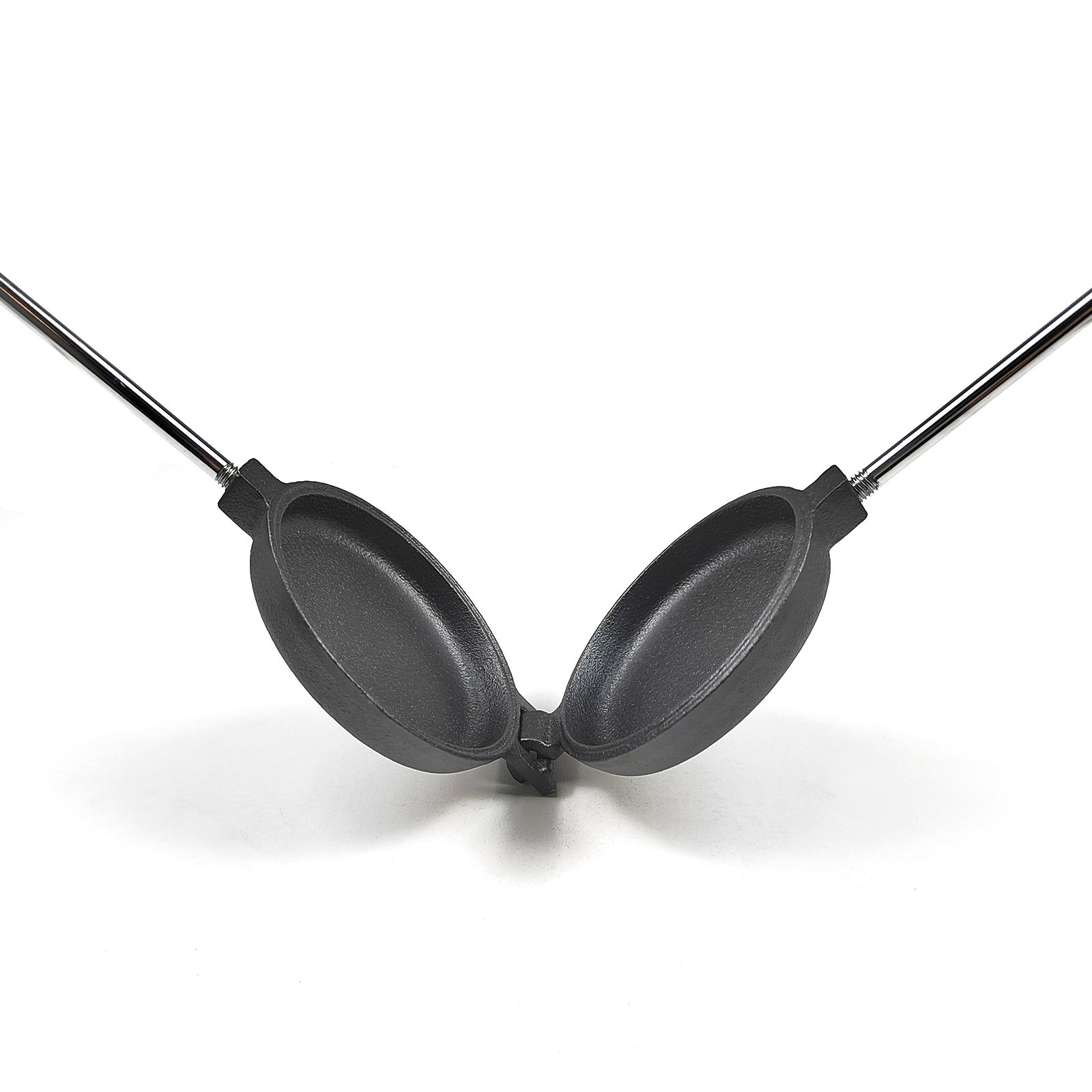 Home > HAWOK Cast Iron Round Pie Iron with Stainless Steel and Wooden Handle set of 2