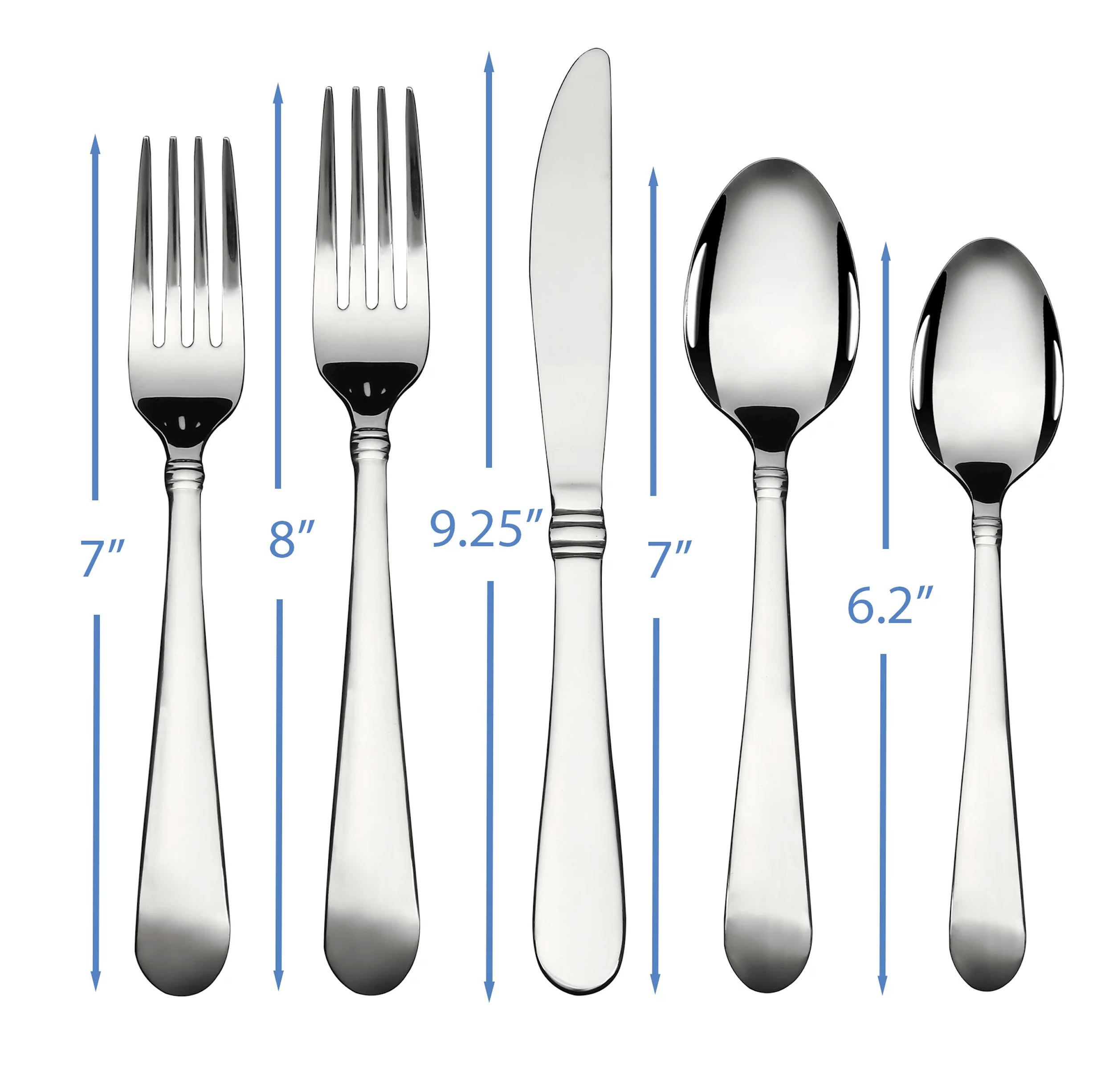 20pc Flatware Set great for everyday use. The mirrored finish will bring comfort and charm to your dinner table.