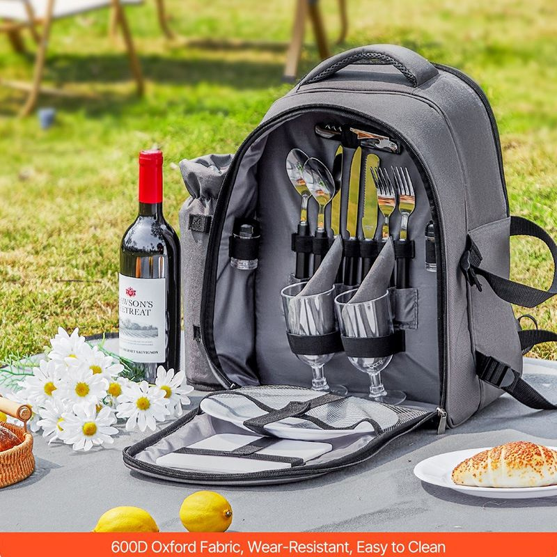 1.This picnic backpack keeps your food, drinks, and utensils neatly packed for any outdoor outing.